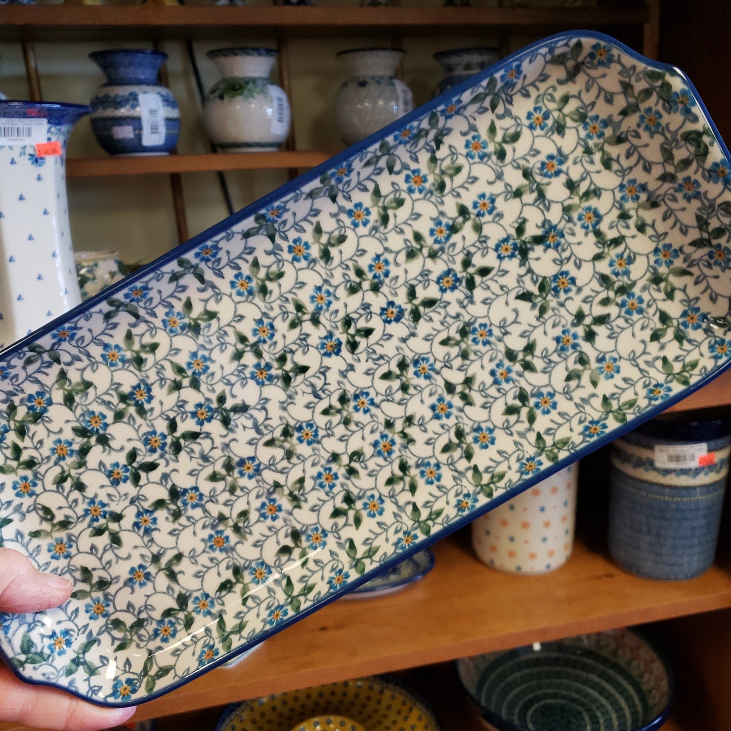 Polish Pottery Tray ~ 5.5" x 12" 410-2089X ~ Forget Me Knots