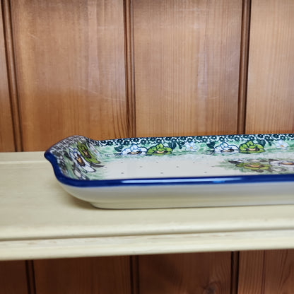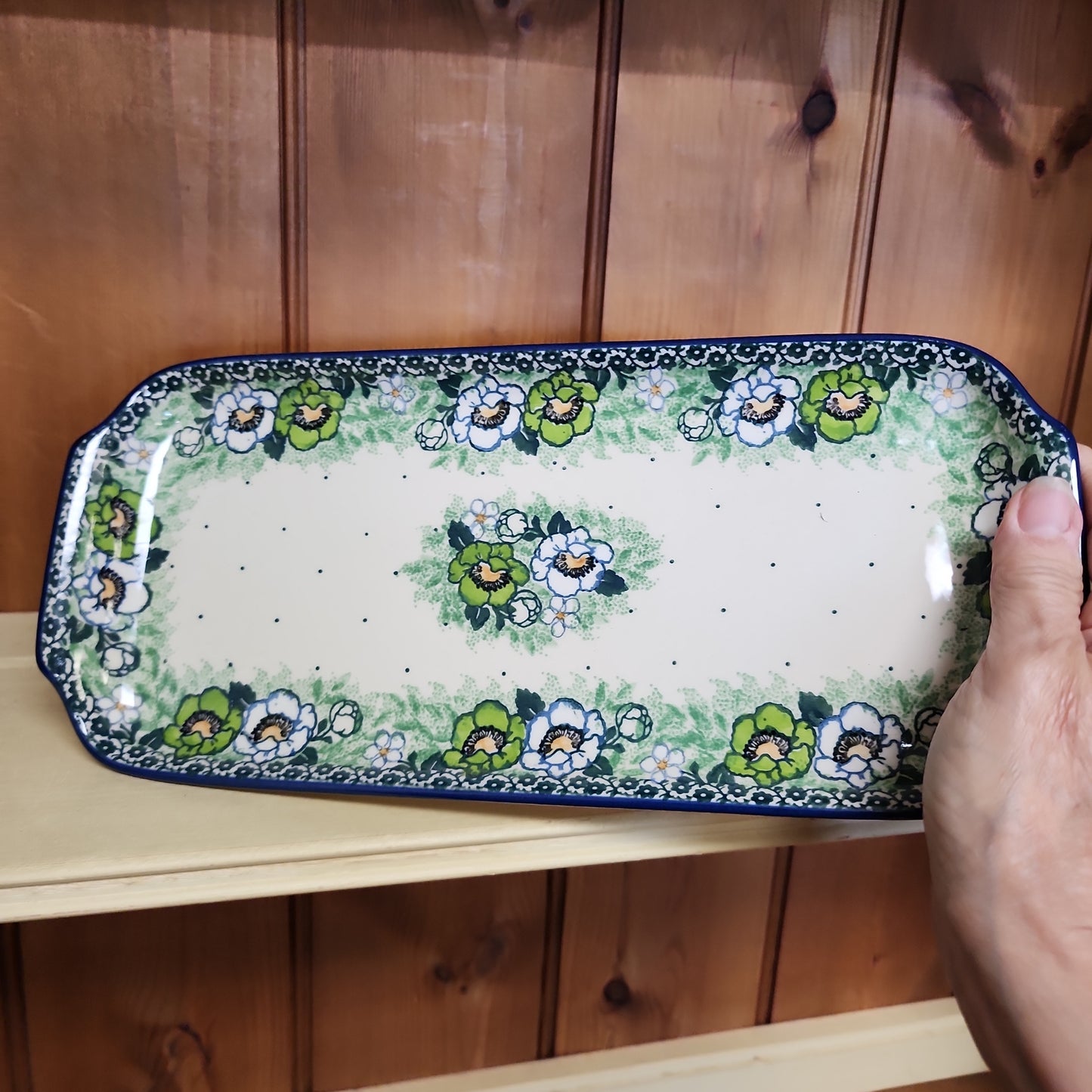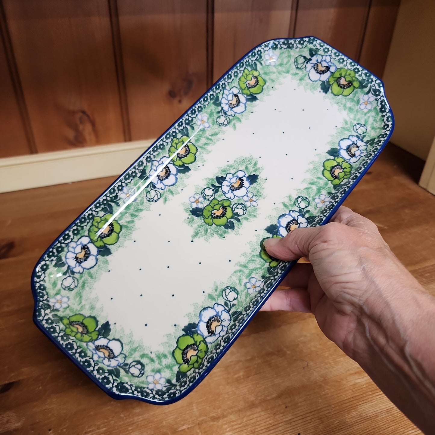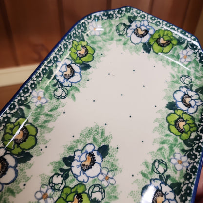 Polish Pottery Tray ~ 5.5" x 12" 410-2320X ~ Green Poppies