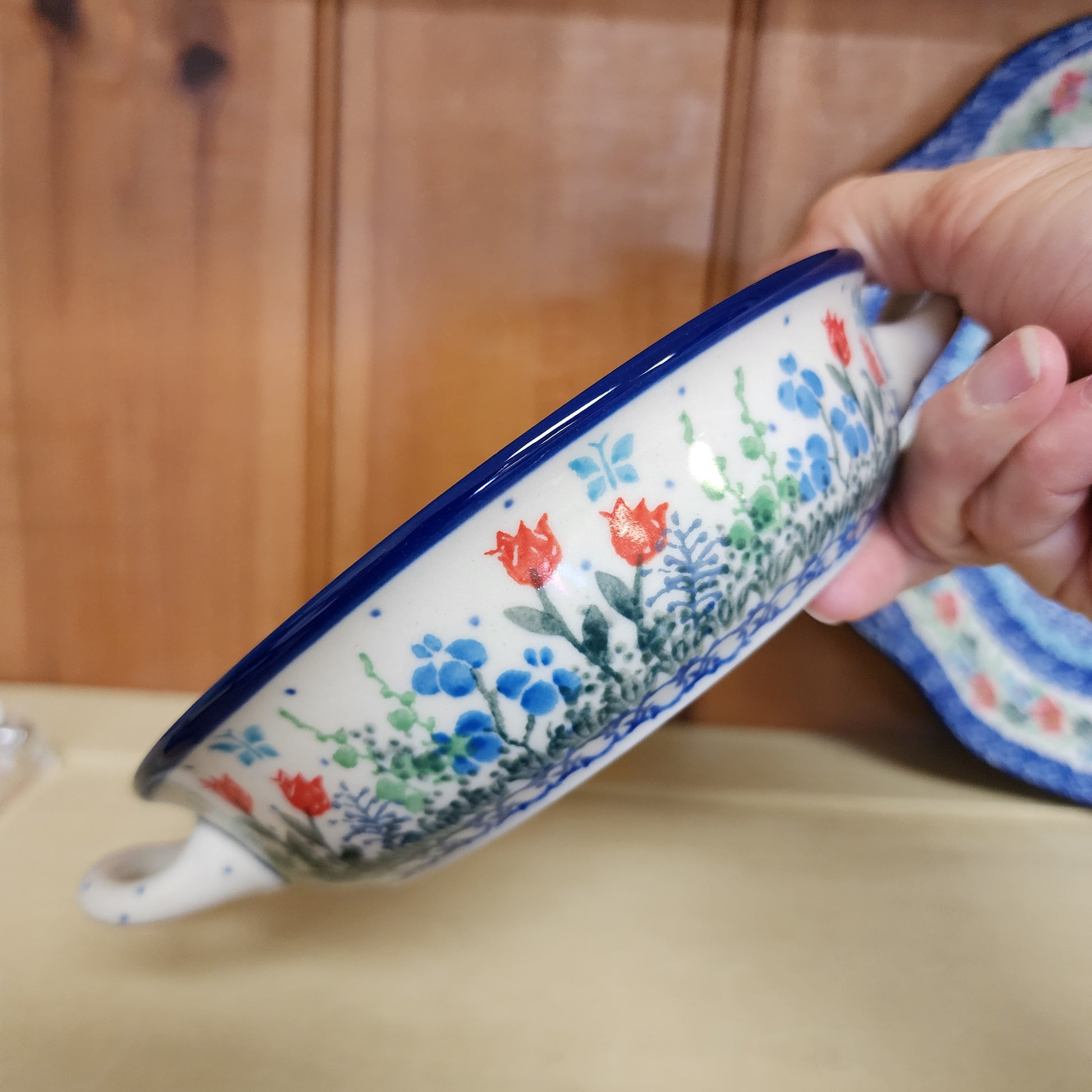 Polish Pottery Round Baker w/handles - 6-3/4" C40-2903 Tulip Horizon