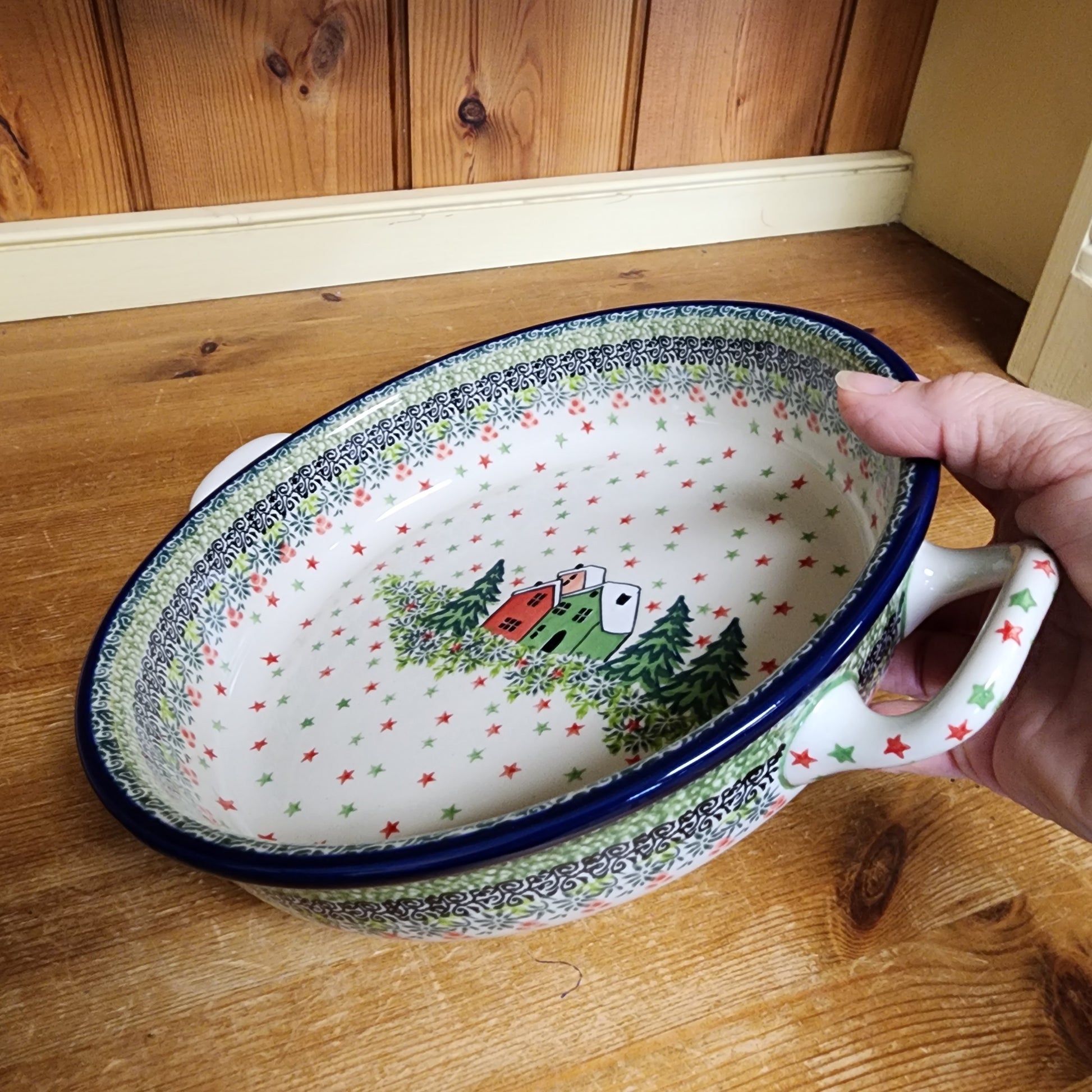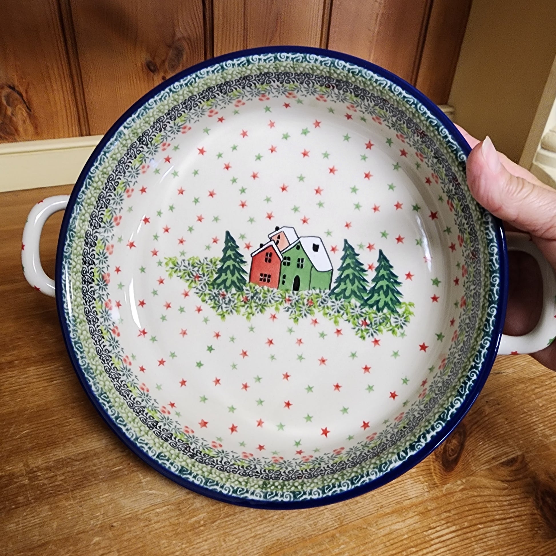Polish Pottery C39 ~ Round Baker w/handles - 9" C39-U5037 U4 pf0608