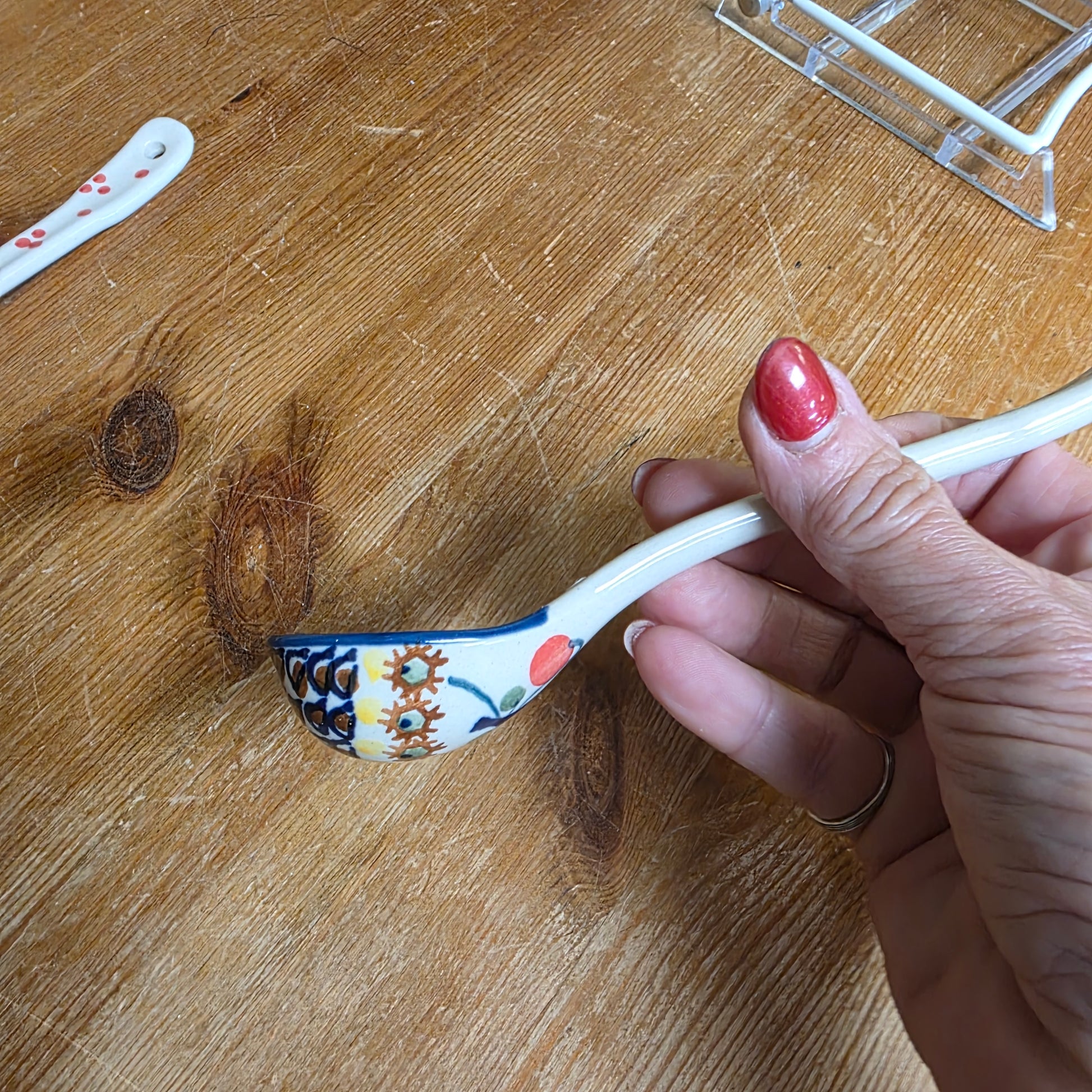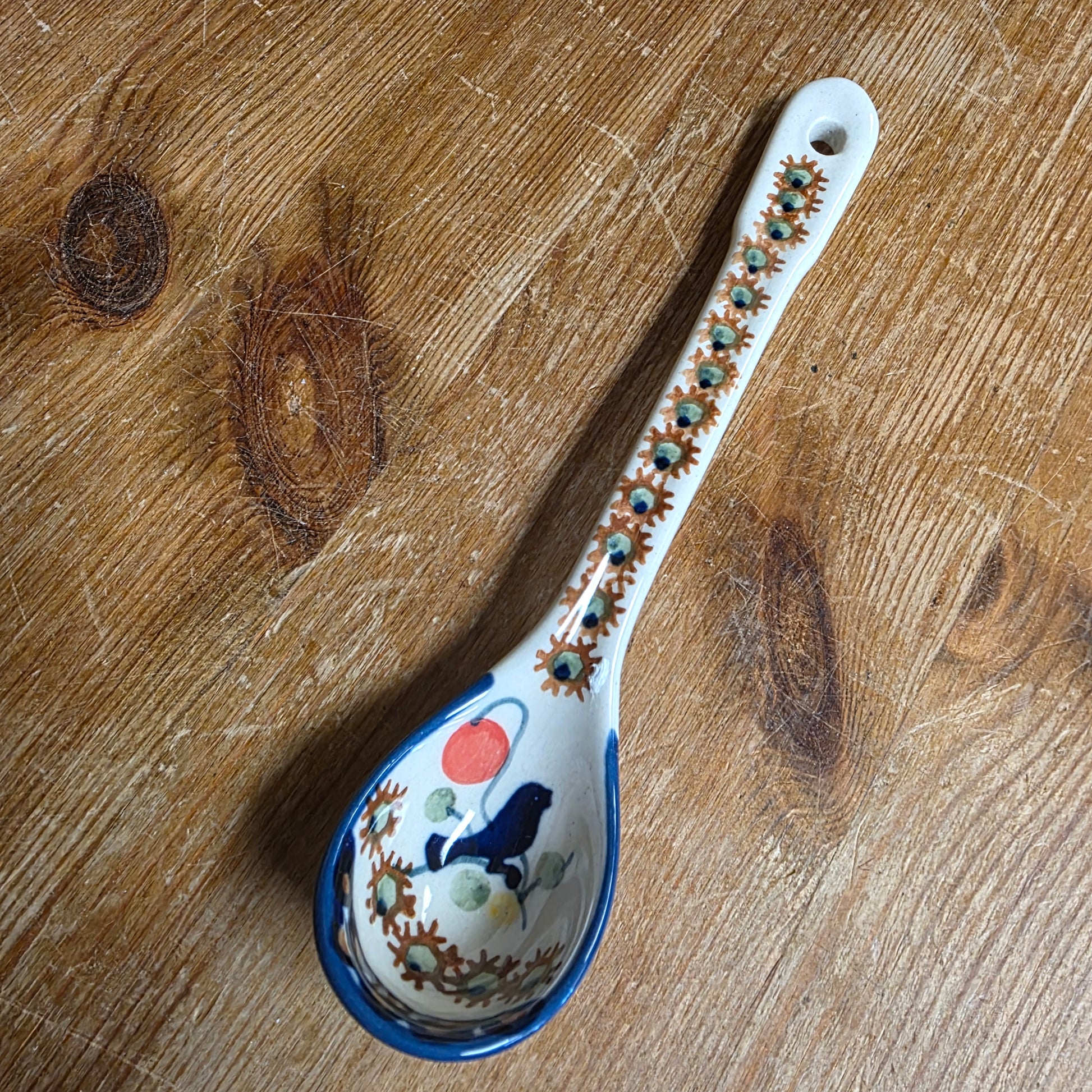 Polish Pottery spoon 6.5 inch long , has a deeper scoop than most