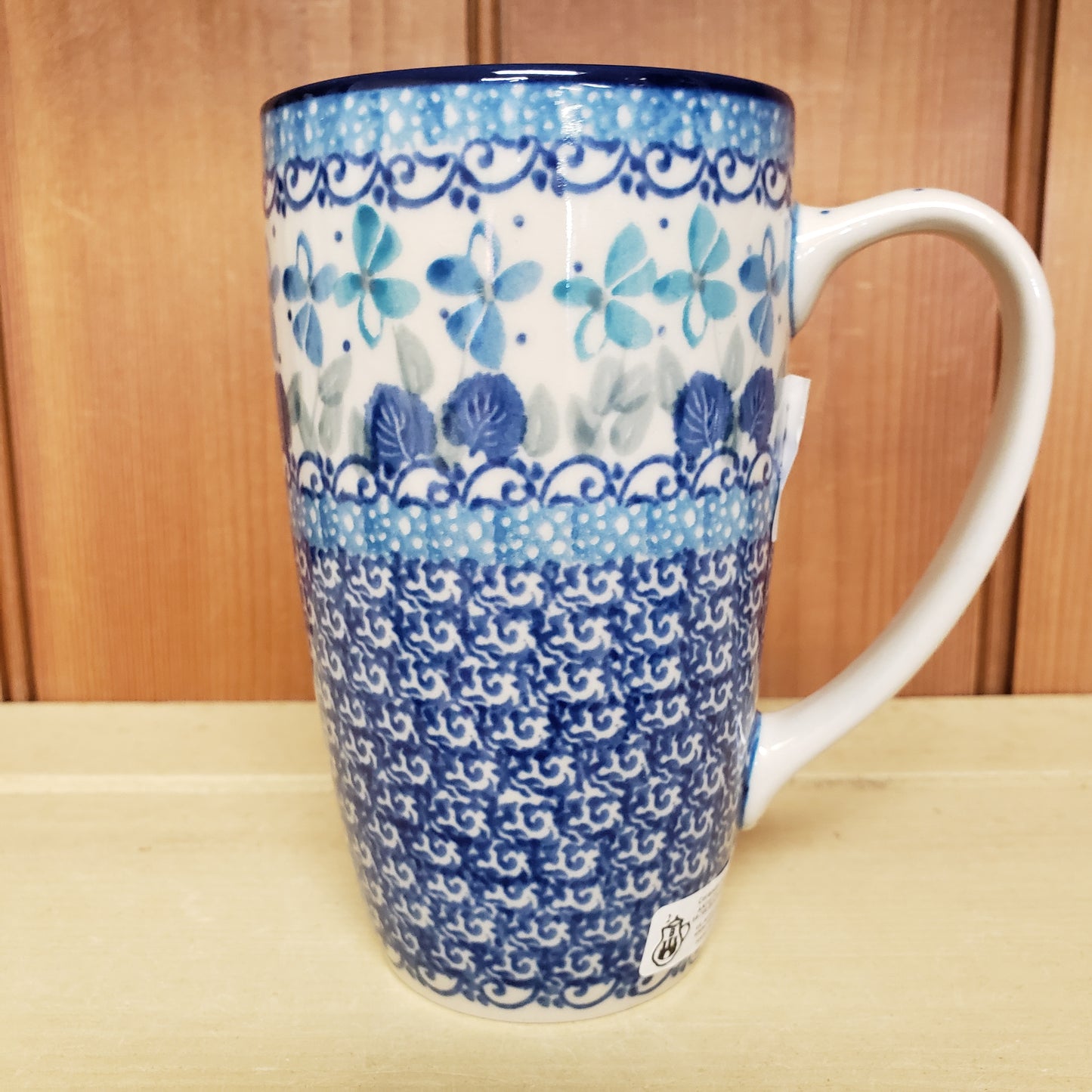 Polish Pottery Tall Mug 2751X ~ Blue Orchids PF1024