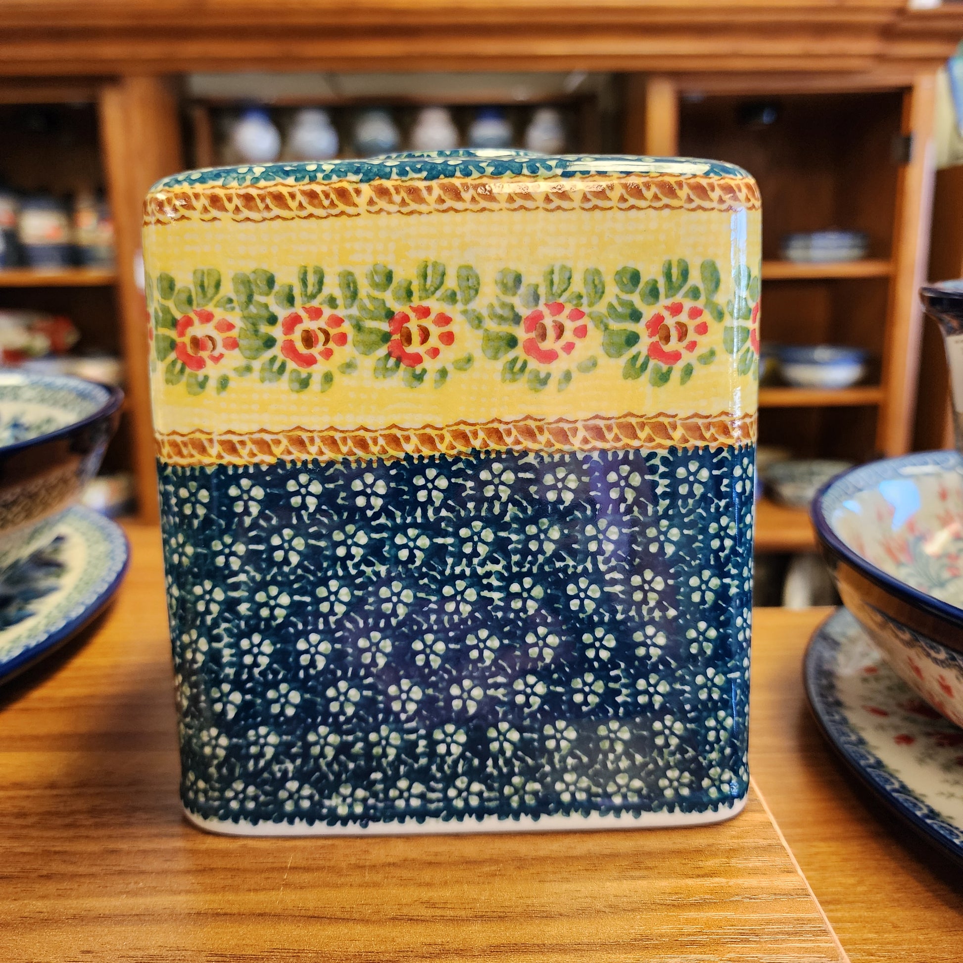 Polish Pottery tissue box cover 5.5"