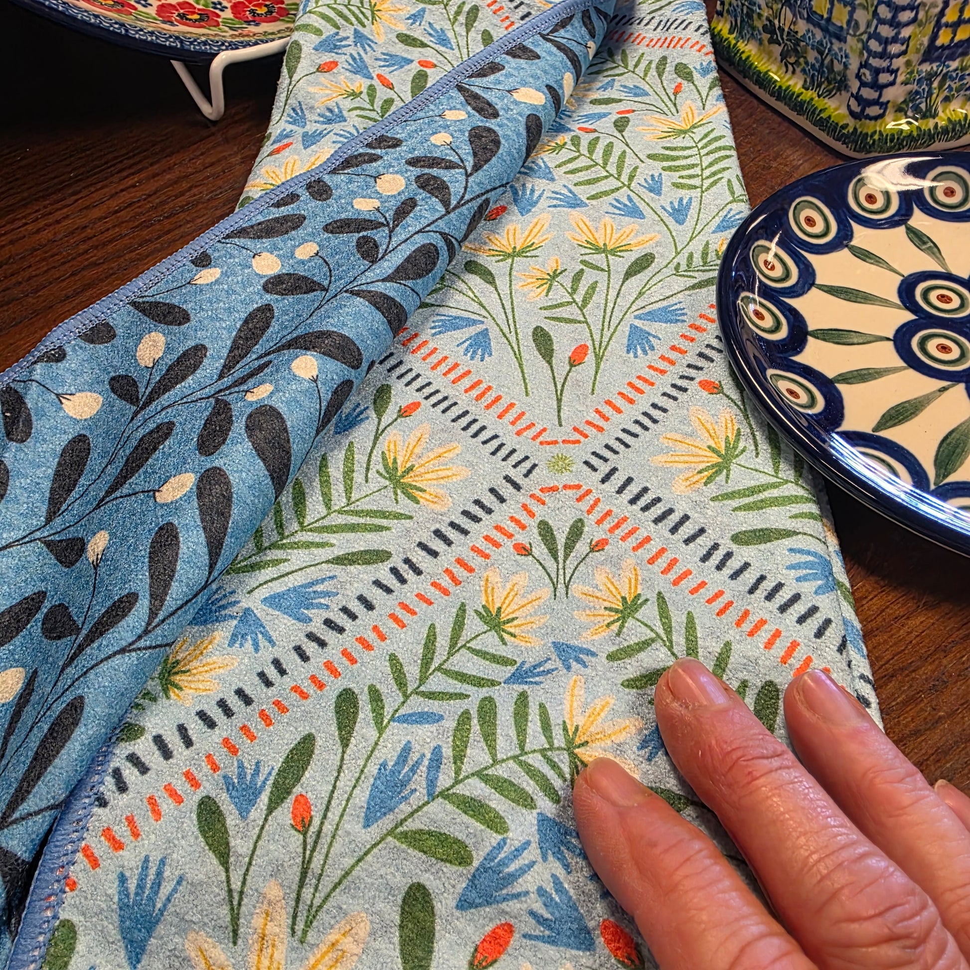 Say hello to your new favorite kitchen towel! Our new double sided hand towels are sure to add a pop of color to your kitchen with two, fun statement designs.