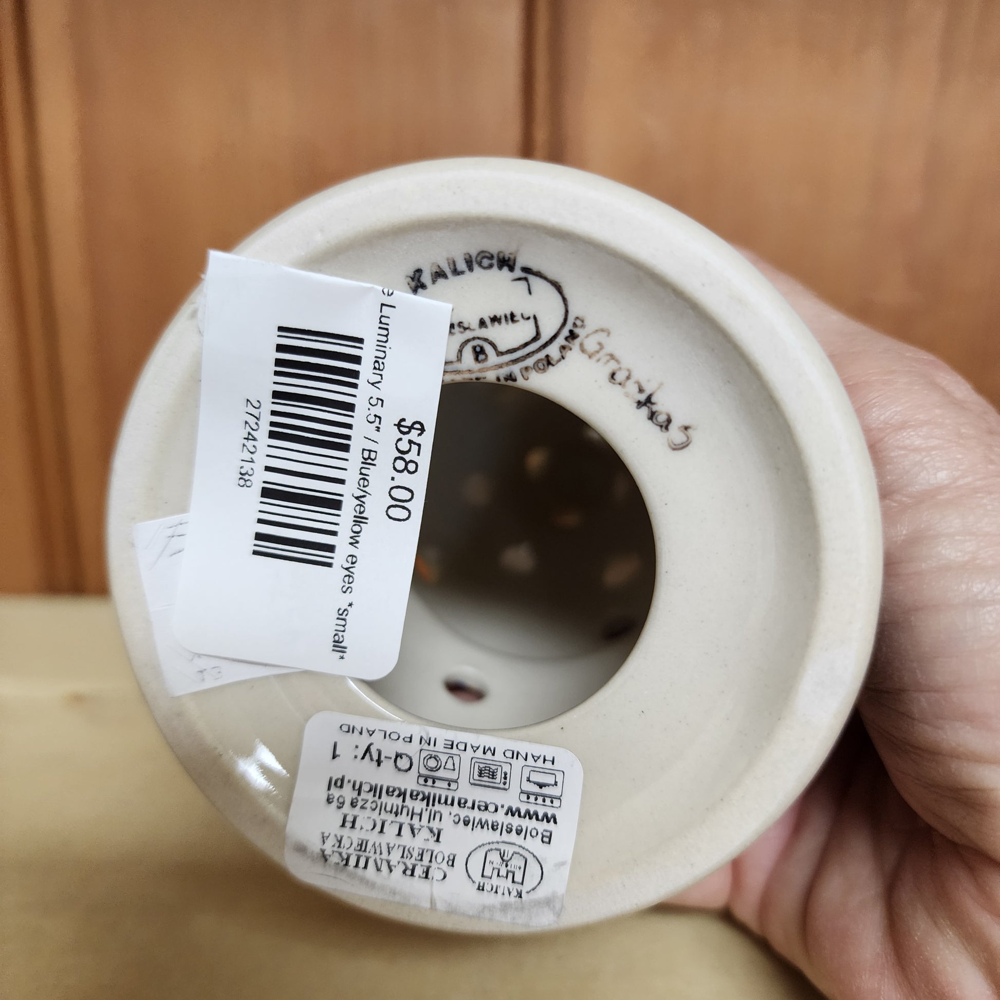 Polish Pottery Christmas tree luminary 5.5"